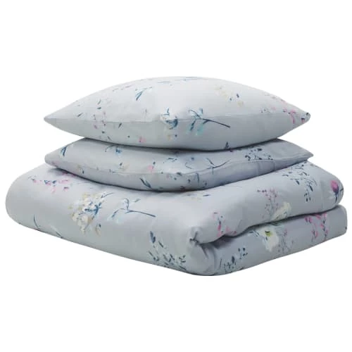 Ensemble de literie bleu clair à motif floral. Ce linge de lit double face aux couleurs pastel, agrémenté d’un imprimé floral, apportera un air de printemps à votre chambre. Le motif floral coloré d’un côté et un délicat motif floral blanc de l’autre offrent deux façons différentes d’habiller votre lit. La composition en coton doux au toucher et perméable à l’air est une garantie de sommeil réparateur.Détails: Type de produit: Linge de lit Style: Scandinave Couleur principale: Bleu Nuance: Bleu clair Type de matière: Tissu Matière principale: Coton Composition de la matière: 100% Coton Densité: 120 Motif: Floral Dimensions: Taille des draps: 200×220 Taille de l`oreiller: 80×80 Poids: 1300 kg L`offre inclue: 1 x House de couette, 2 x Taie d’oreiller, Matelas et parure de lit ne sont pas inclus Caractéristiques clés: Matière perméable à l’air afin de permettre une circulation, Facile à mettre et enlever grâce à un bouton, Motif recto-verso, Fibres délicates, Apporte de la chaleur dans votre intérieur Informations d`assemblage: Ne nécessite pas d’assemblage Informations supplémentaires: Ce produit possède le label Oeko-Tex® – Standard 100. Les produits avec ce label ont été testés par des instituts textiles internationalement reconnus et certifiés. Les textiles avec ce label sont de bonne qualité et n’ont pas d’effets nocifs sur votre santé. Conseils de maintenance: Coton: 1.Ne pas sécher en machine et ne pas repasser 2.Lavez à la main ou sélectionnez un cycle de lavage délicat (30 °C). Suivez en premier lieu les instructions du fabricant sur l’étiquette.