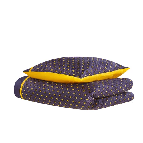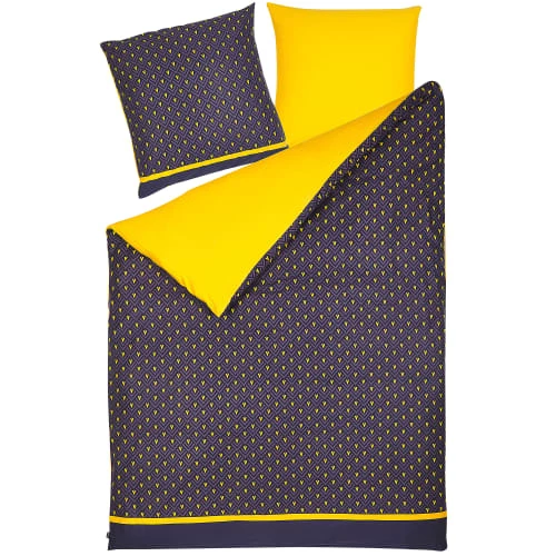 Set housse de couette et taie d’oreiller bleu et jaune. Changez la déco de votre chambre à tout instant avec cette parure de lit réversible jaune et bleu foncé. Composé d’une housse de couette et d’une taie d’oreiller en coton, cet ensemble de linge de lit est pratique grâce à son bouton facile à ouvrir et fermer qui maintient la couette. Ce set moderne peut être utilisé dans une chambre d’enfant ou d’adulte.Détails: Type de produit: Linge de lit Style: Moderne Couleur principale: Bleu Nuance: Bleu foncé Type de matière: Tissu Matière principale: Coton Composition de la matière: 100% Coton Densité: 125 Motif: À chevron Dimensions: Taille des draps: 135×200 Taille de l`oreiller: 80×80 Poids: 1000 kg L`offre inclue: 1 x House de couette, 1 x Taie d’oreiller, La couette et les coussins ne sont pas compris dans le set Caractéristiques clés: Facile à mettre et enlever grâce à un bouton, Design et couleur tendance, Un style simple s’adaptant à tout type d’intérieur, Matières de bonne qualité, Fabrication et fintion irréprochables Informations d`assemblage: Ne nécessite pas d’assemblage Informations supplémentaires: Ce produit possède le label Oeko-Tex® – Standard 100. Les produits avec ce label ont été testés par des instituts textiles internationalement reconnus et certifiés. Les textiles avec ce label sont de bonne qualité et n’ont pas d’effets nocifs sur votre santé. Conseils de maintenance: Coton: 1.Lavez à la main ou sélectionnez un cycle de lavage délicat (30 °C). Suivez en premier lieu les instructions du fabricant sur l’étiquette 2.Ne pas sécher en machine et ne pas repasser.