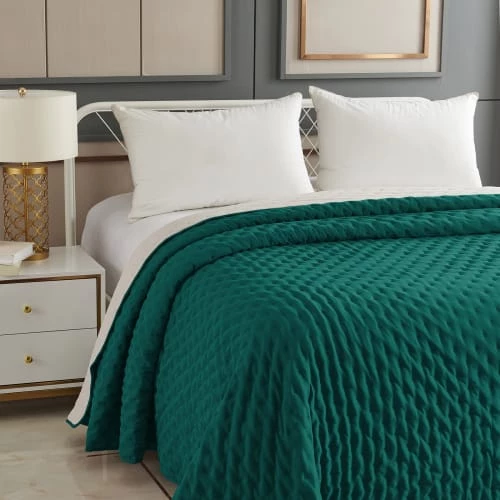 Home Maison Couvre-lits Dessus De Lit Matelassé Réversible Polyester Bleu Canard 260 X 240