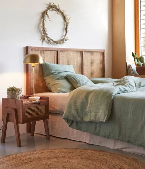 Notre conseil : complétez le décor de votre chambre en choisissant des rideaux assortis à votre cache-sommier comme les rideaux en lin lavé naturel.