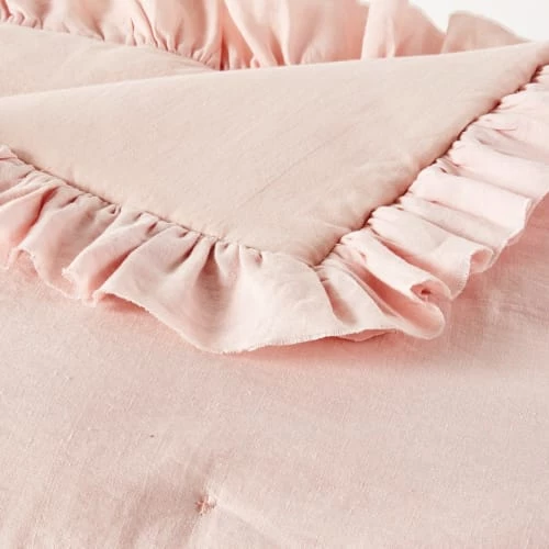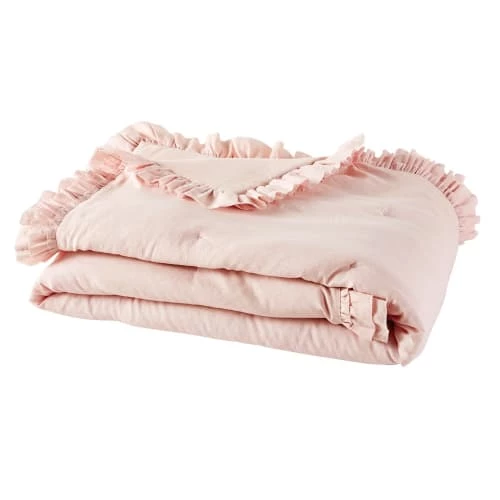 Inspirés du style romantique, les volants s’invitent sur le textile pour apporter une note subtile d’élégance et de féminité… La preuve avec le boutis en coton et lin rose 100×200 HANNAH ! Revêtu d’une housse composée à 49% de coton et 51% de lin, ce boutis à volant apportera un vent de légèreté dans votre pièce. Rien de plus cosy !