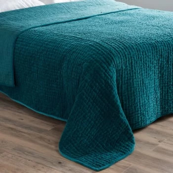 Succombez à la couleur tendance de la saison avec le boutis en velours surpiqué bleu canard ! Ultra doux, ce boutis au surpiquage fantaisie est très moelleux et son garnissage réalisé en polyester recyclé est respectueux de l’environnement… Vous n’avez plus d’excuse pour ne pas craquer !