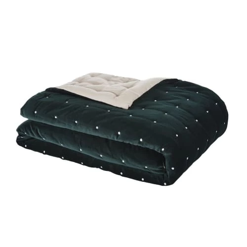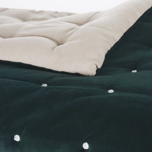 Le boutis réversible en velours de coton vert émeraude 240×260 CALIO sublime le lit en lui apportant une touche d’élégance. Source de confort, ce boutis en velours coton vert émeraude (au recto) et beige (au verso) trouve également sa place sur une méridienne ou un matelas de sol.