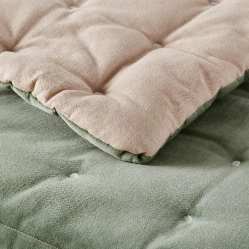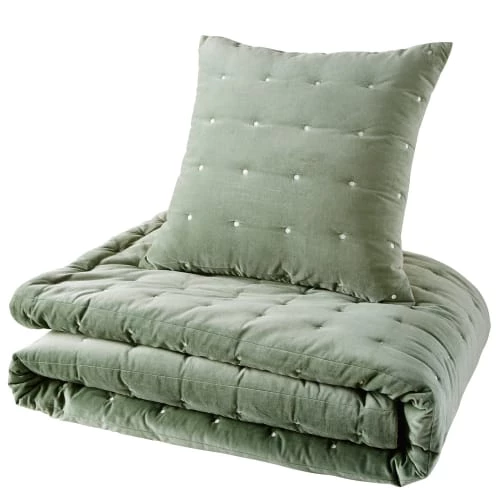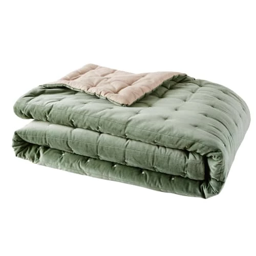 Avec son coloris vert et son élégance, le boutis réversible en velours piqué vert 240×260 CALIO est idéal pour habiller votre intérieur ! Au dos, découvrez un revêtement en coton beige. De face, les piqûres en point sont parfaitement mises en avant sur le tissu en velours. À la fois chic, doux et confortable, ce boutis en velours donnera une allure chic à votre déco !